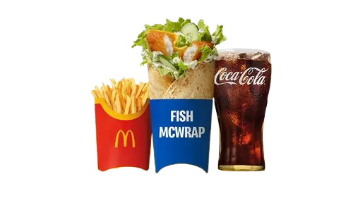 Lahodná novinka Fish McWrap je tady! Jemné rybí filé v křupavé strouhance spolu s plátkem s čedarem, čerstvou okurkou, salátem a výraznou tatarkou, to vše zabalené v tortille. Nápoj + Velké hranolky